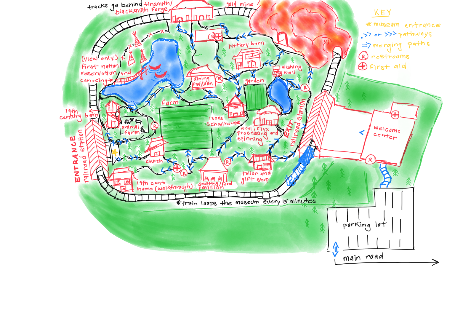 For a themed entertainment course, I was tasked with conceptualizing an interactive museum exhibit into a model. I chose to focus on the American Frontier, namely to reflect on how much the country has changed from this period as well as to promote distancing ourselves from techno-feudalism. The intent was to honor and highlight how the labor and mindset of the frontier shaped the country’s cultural identity, while acknowledging the painful erasure of the minority groups who helped make that ideal a reality. I broke the project up into two phases: ideation and sketching to modeling and defining the interactive aspects of the museum exhibit. The defining, interactive elements of the museum were rooted in the old world. Guests learning how to sew, understanding the milking process of an animal, or simulating mining for gold. These unique experiences are so far removed from current lifestyles - it is a refreshing way to understand and appreciate modern advancements that starting with individual, hard work.